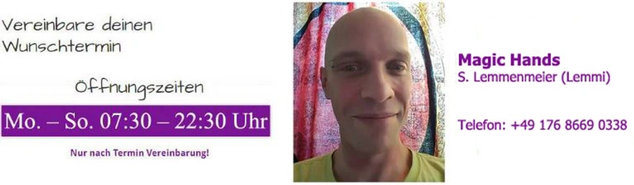 Termine von Mo. - So. 07:30 - 22:30 Uhr, nur nach Vereinbarung!